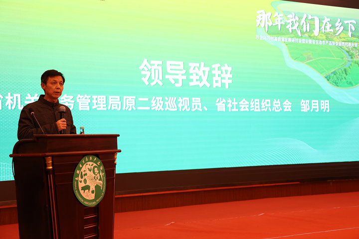 安徽省省社会组织总会负责人、省机关事务管理局原二级巡视员邹月明发表致辞。