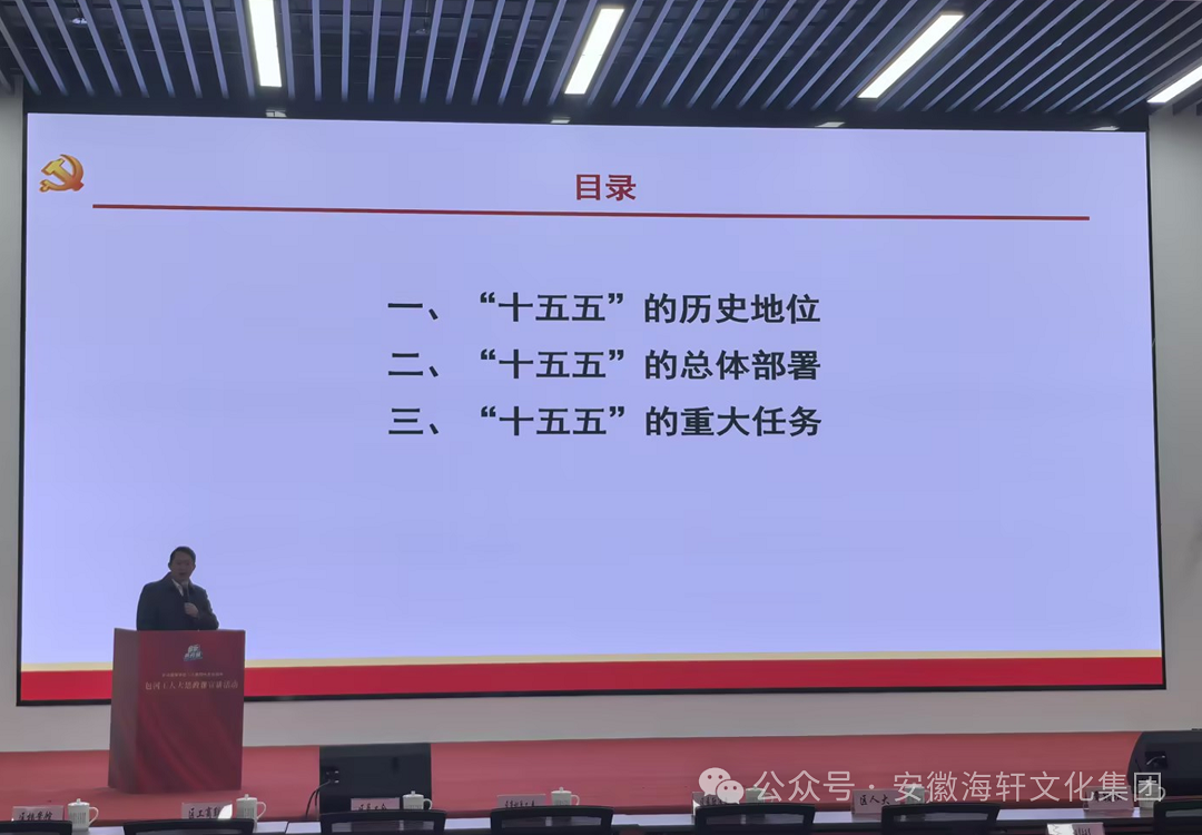 12月12日下午,应包河区总工会的邀请,省五一劳动奖章获得者、合肥市劳动模范、安徽海轩文化集团董事长吴群学,走上包河区工人大思政课讲坛,宣讲党的二十届四中全会精神。该活动由合肥市委宣传部、合肥市总工会指导,由包河区委宣传部、合肥市广播电台、包河区直机关工委、包河区总工会主办,来自包河区各单位工会主席、副主席和职工等近200人参加。